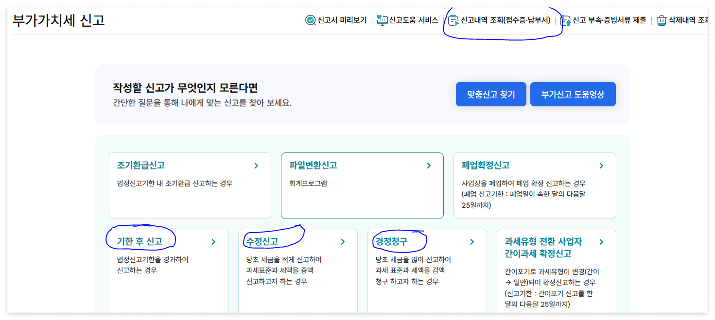 하지만, 신고기한 이후라면, 기간에 따라 '수정신고', '경정신고', '기한 후 신고'로 구분해서 하셔야 합니다.