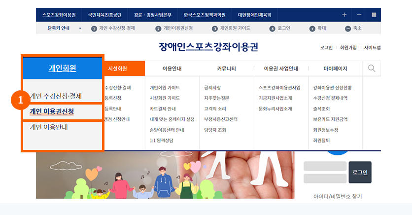 - 아이디/비밀번호가 있는 계정 (장애인스포츠강좌이용권 사이트 회원가입 필요)