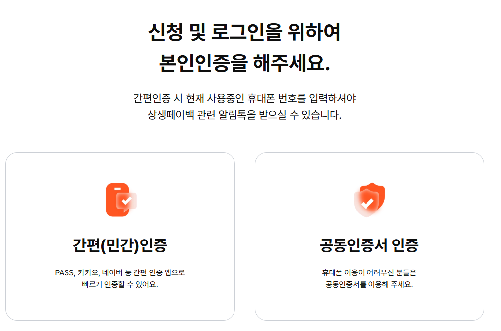 2. 페이백 및 소비복권 조회하기 버튼 클릭 후 본인 인증 (휴대폰 or 공동인증서)