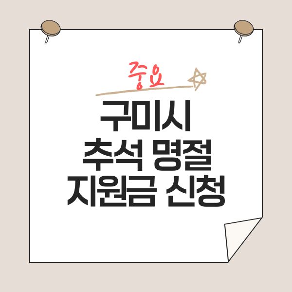 구미시는 추석 명절을 맞아 취약계층의 생활 안정과 명절 물가 부담 완화를 위해 추석 명절 지원금을 지급합니다.